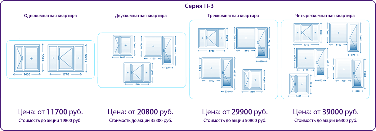 Нажмите на изображение типпа своего дома и Вы узнаете размеры своих окон и цены для 1-2-3 комнатных квартируб.
