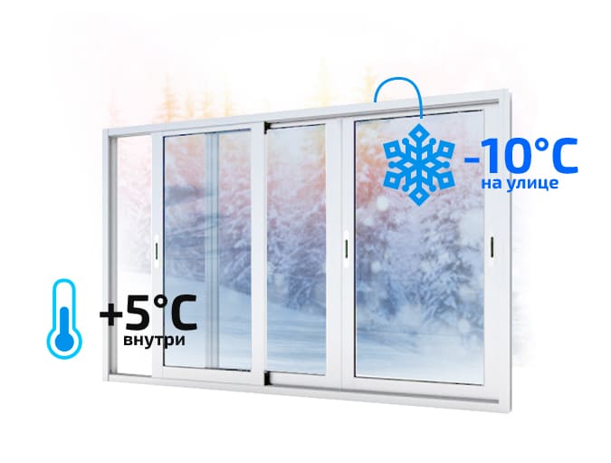 • Теплое остекление (теплоизоляция – 0,63 м2 * С/Вт)