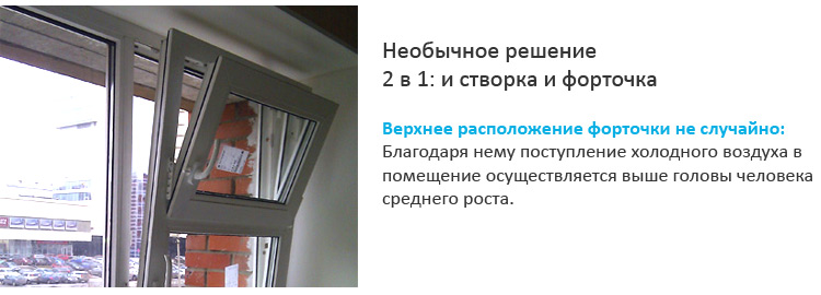 Форточка находится в верхней части окна не случайно. В таком положении воздух с улицы поступает на высоте выше человеческого роста.